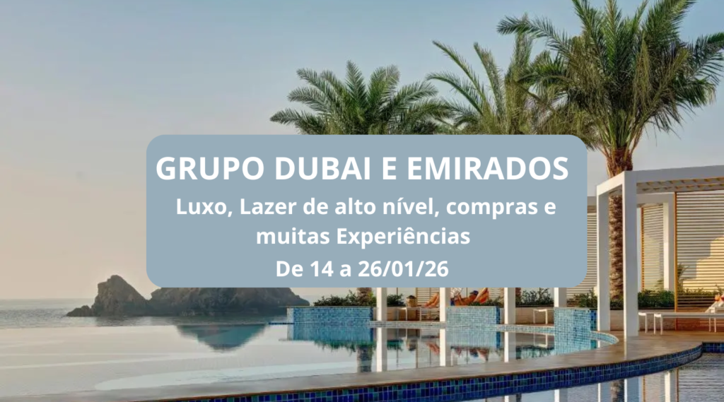 Flyworld Indaiatuba JAN/26 – GRUPO DUBAI E EMIRADOS Nas Férias de Janeiro/26 Período: De 14 a 26 de Janeiro/26 Para Dúvidas e Reservas Clique Aqui – Whatsapp GRUPO DUBAI E EMIRADOS “Nas Férias de Janeiro/26” Dubai – Abu Dhabi – Hotel Deserto – Fujairah – Dubai Prepare-se para visitas icônicas como o Burj Khalifa, o […]